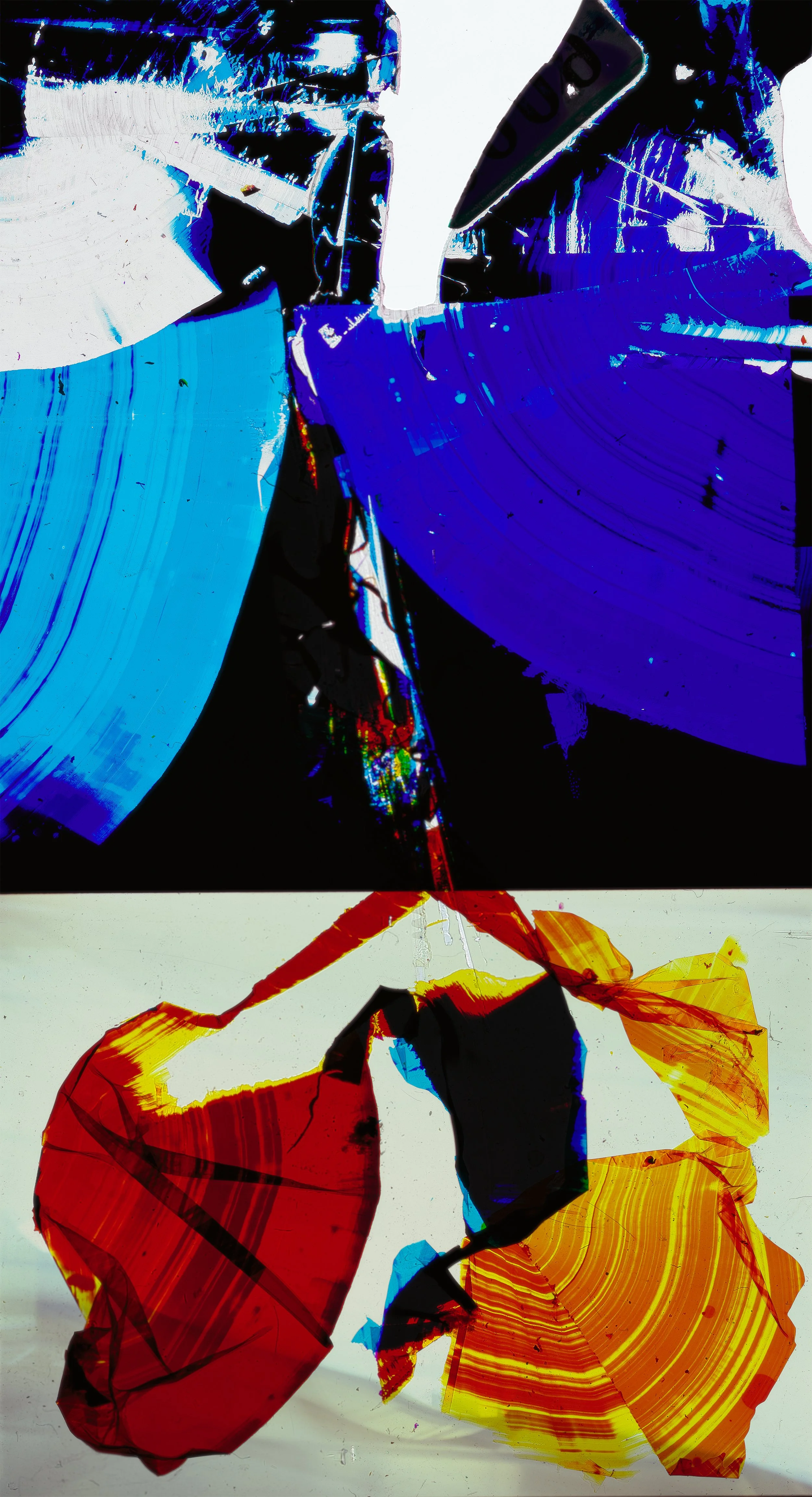 All of my work is analog, working directly with and on color transparencies (color slide film), and in some instances color negative film, 8, 16 and 35mm films. The film is scanned for enlargements, but is in no way digitally manipulated before the printed works are made.